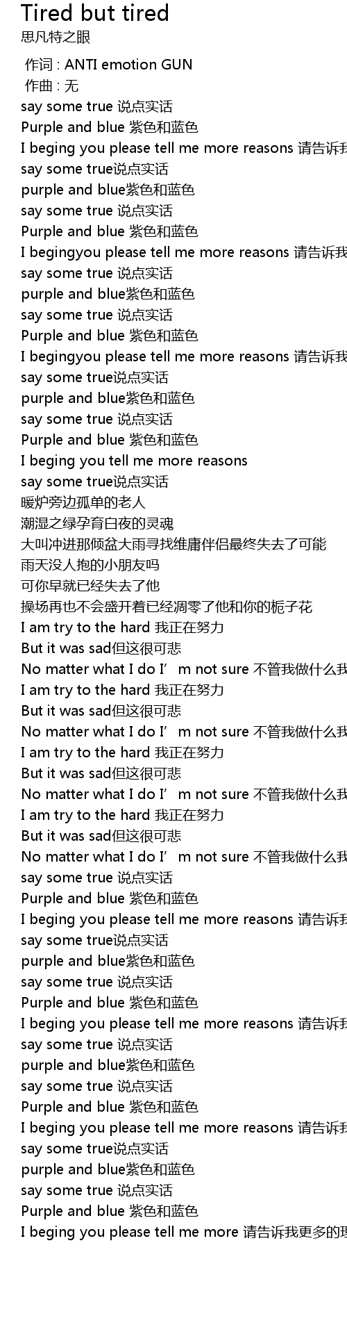 | Song | Tired but tired |
