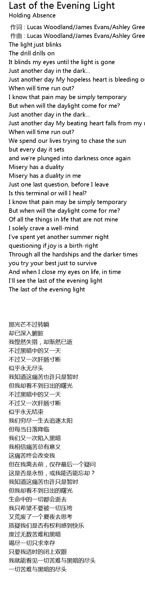 | [00:00.000] | zuò cí : Lucas Woodland James Evans Ashley Green Feisel ElKhazragi |