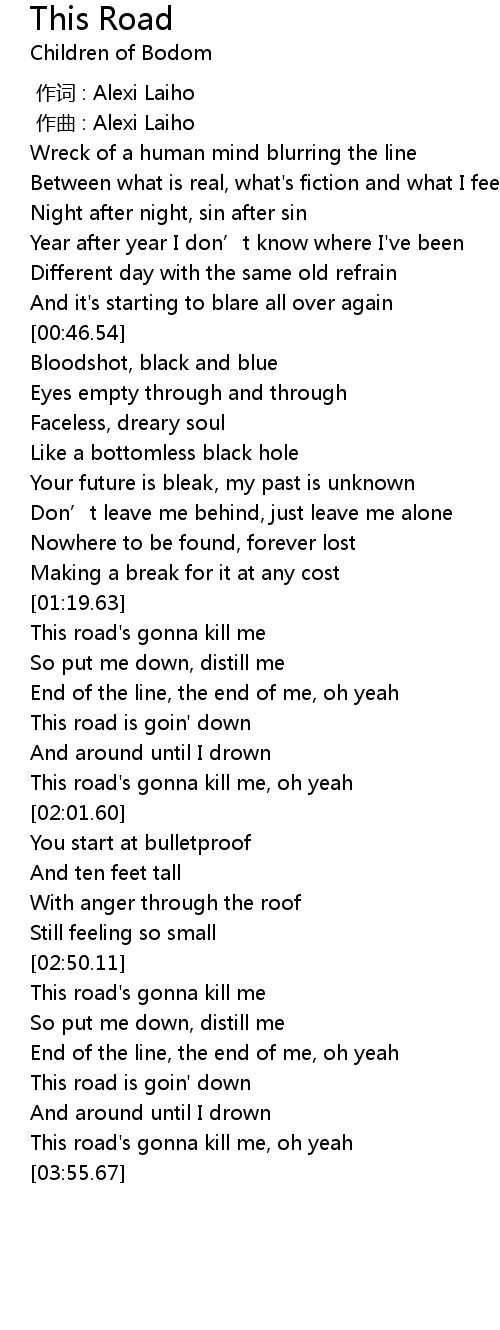 | [03:50.38] | This road' s gonna kill me, oh yeah |
