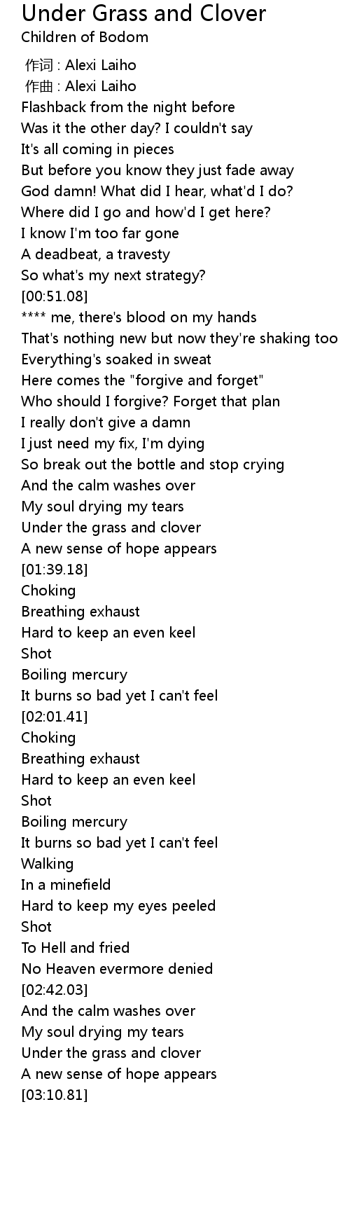 | [03:02.23] | Under the grass and clover |