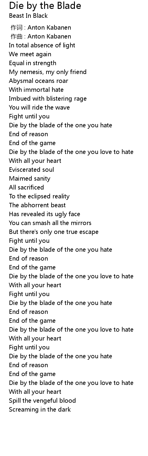 | [01:04.41] | Die by the blade of the one you love to hate |