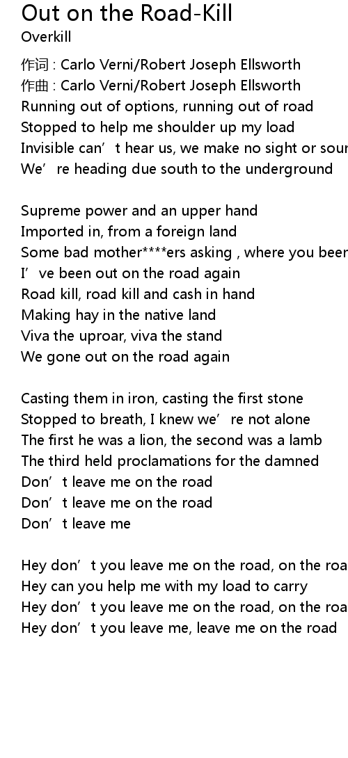 | Song | Out on the Road-Kill |
