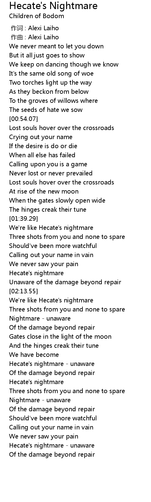 | [02:05.56] | Hecate' s nightmare |