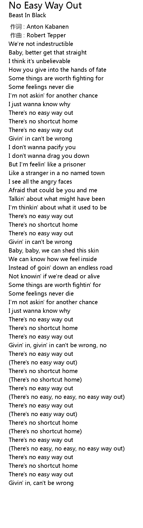 | [03:25.04] | There' s no easy, no easy, no easy way out |