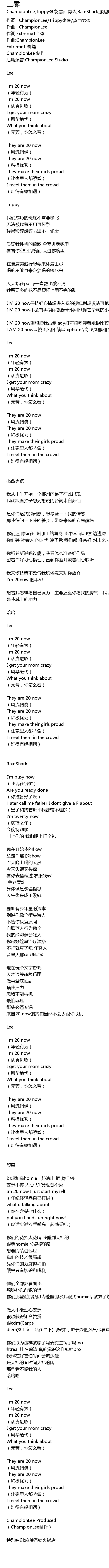 | 作词 : ChampionLee/Trippy张豪/杰西男孩 | |
