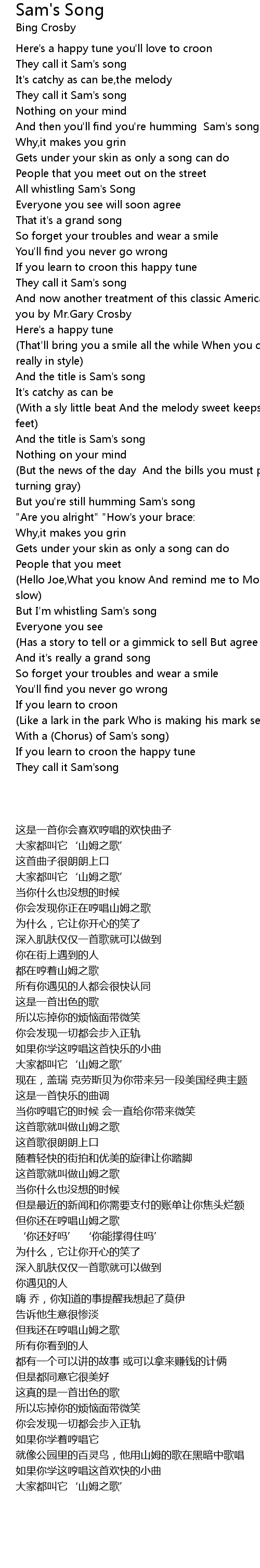 (Like a lark in the park Who is making his mark serenading the dark With a (Chorus) of Sam's song) |