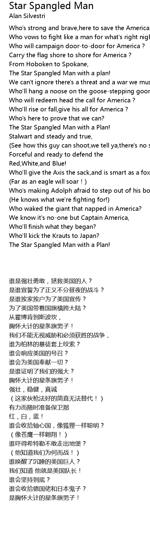 | [00:52.40] | The Star Spangled Man with a plan! |