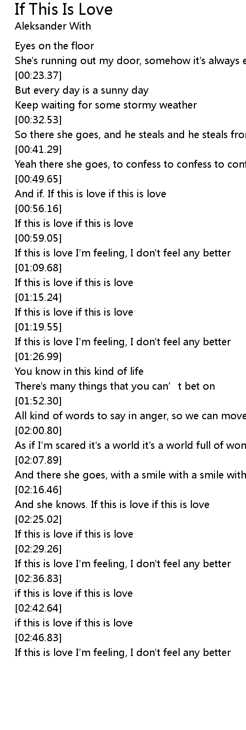| [01:20.36] | If this is love I'm feeling, I don't feel any better |