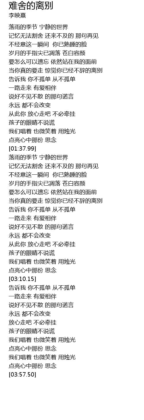 | [00:58.55] | 当你真的要走 惊觉你已经不辞的离别 |