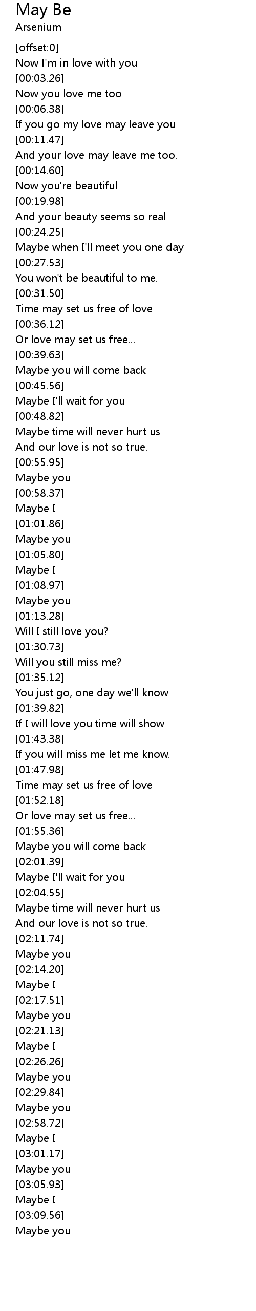 Maybe you will come back |