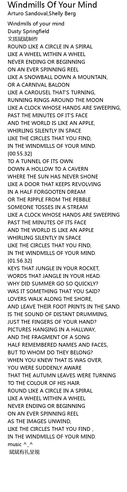 | [00:45.46] | IN THE WINDMILLS OF YOUR MIND. |