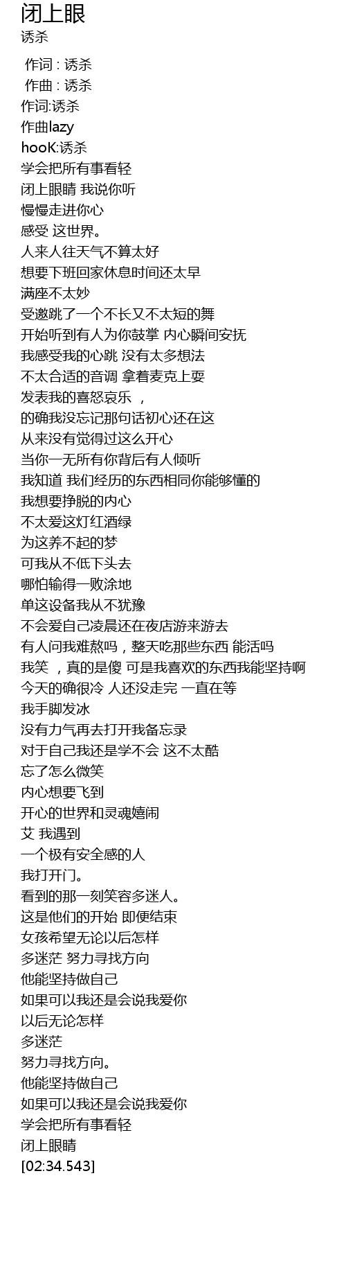 | [00:12.500] | bì shang yǎn jīng wǒ shuō nǐ tīng |
