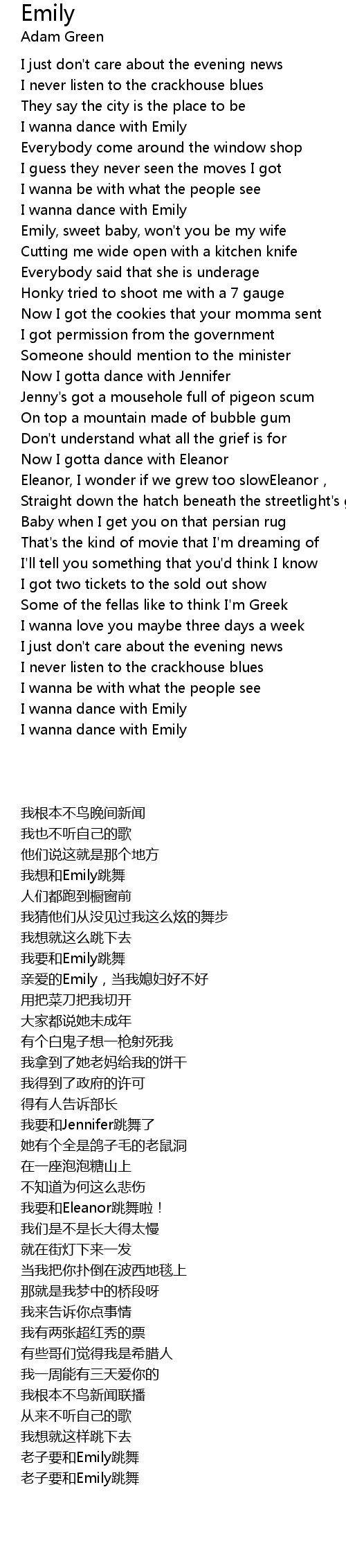 | [00:42.65] | Emily, sweet baby, won't you be my wife |