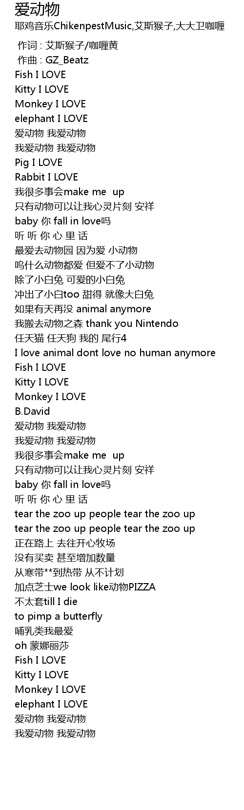 | [00:39.188] | zuì ài qù dòng wù yuán yīn wèi ài xiǎo dòng wù |