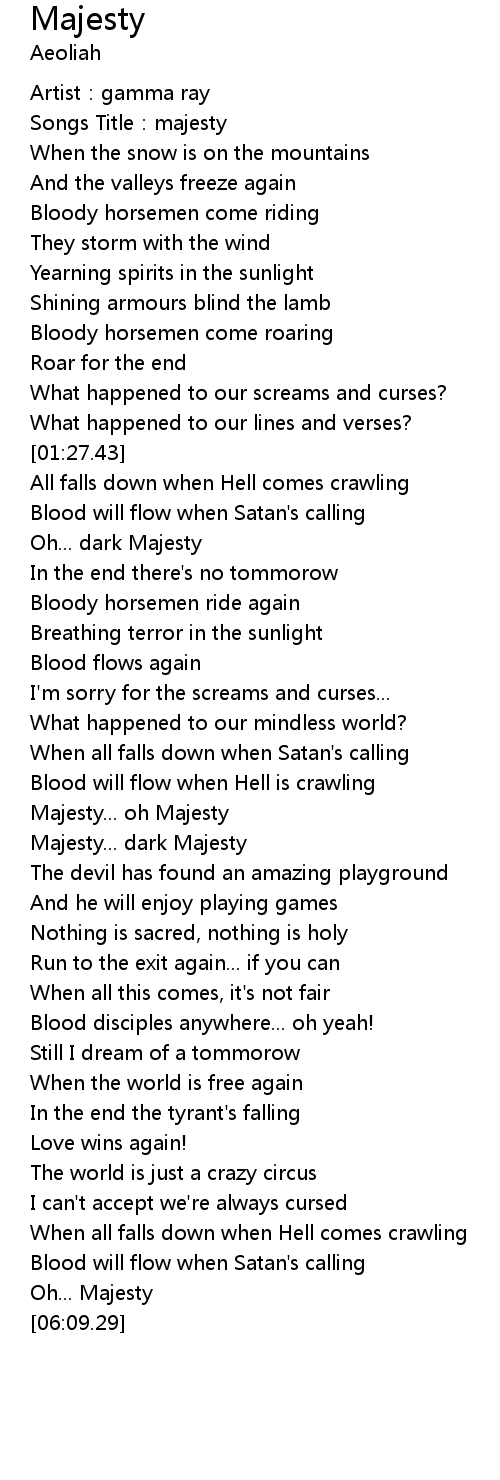 | [02:36.56] | Majesty... oh Majesty |