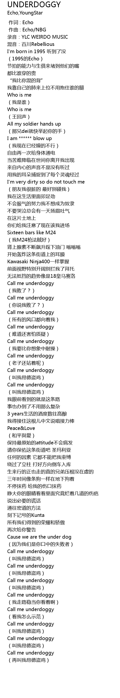 | [01:31.419] | Call me underdoggy |