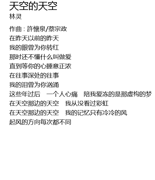 | 在天空那边的天空 我的记忆只有冷冷的风 | |