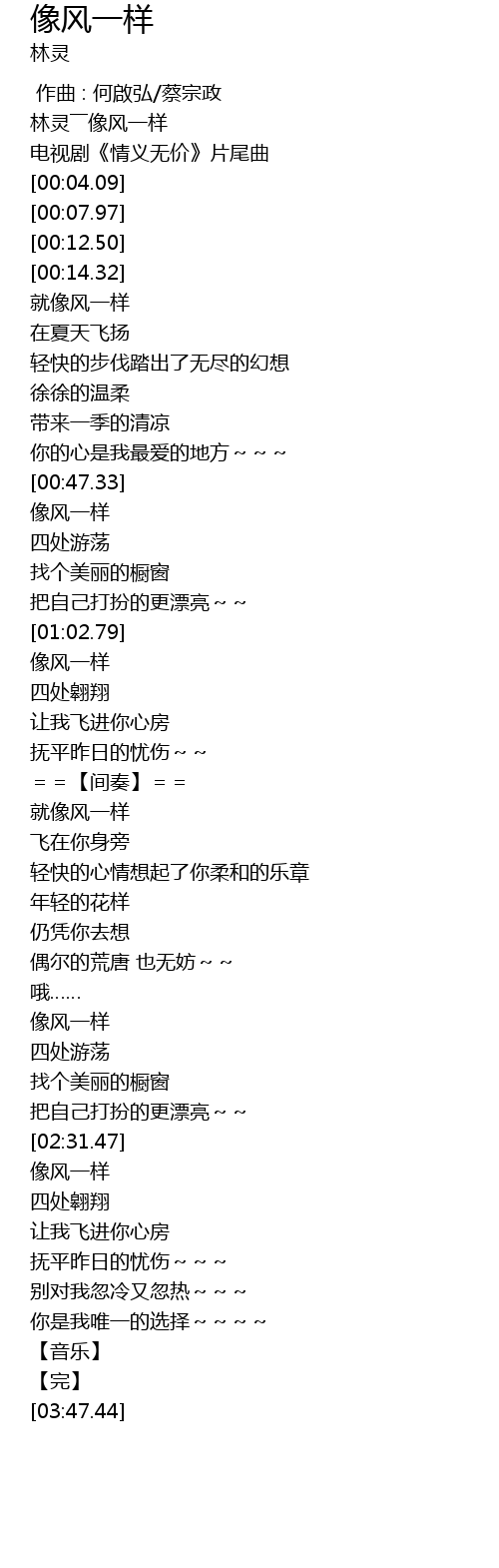 [00:00.58] 林灵――像风一样