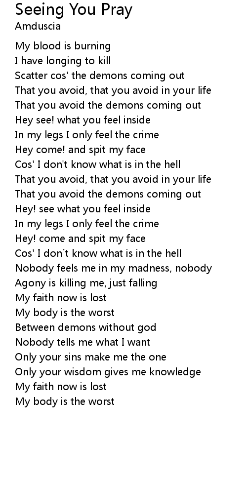 | Song | Seeing You Pray |