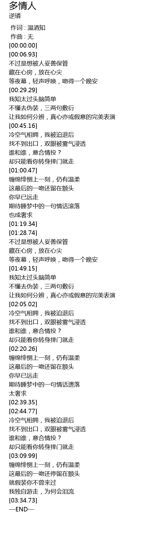 | [00:00.000] | 作词 : 温酒知 |