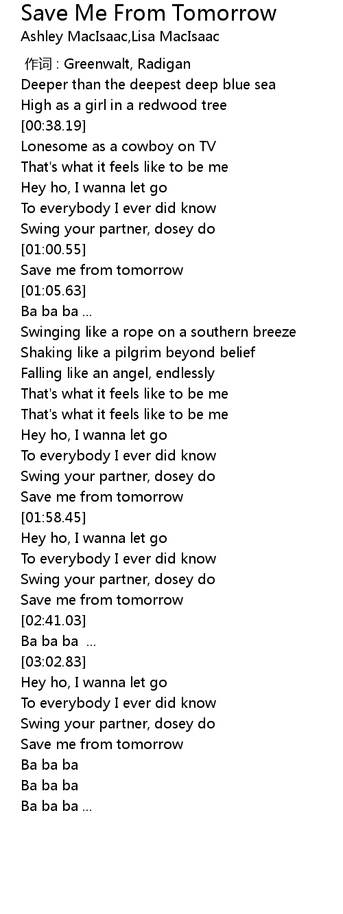 | [02:38.45] | Save me from tomorrow |