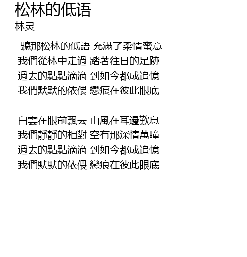 | 聽那松林的低語 充滿了柔情蜜意 | |