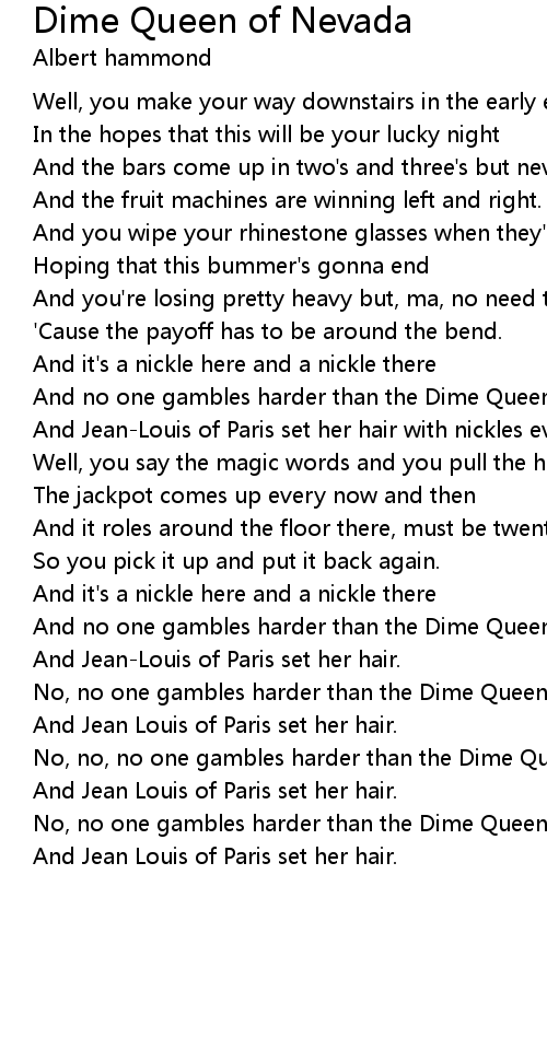 No, no, no one gambles harder than the Dime Queen of Nevada