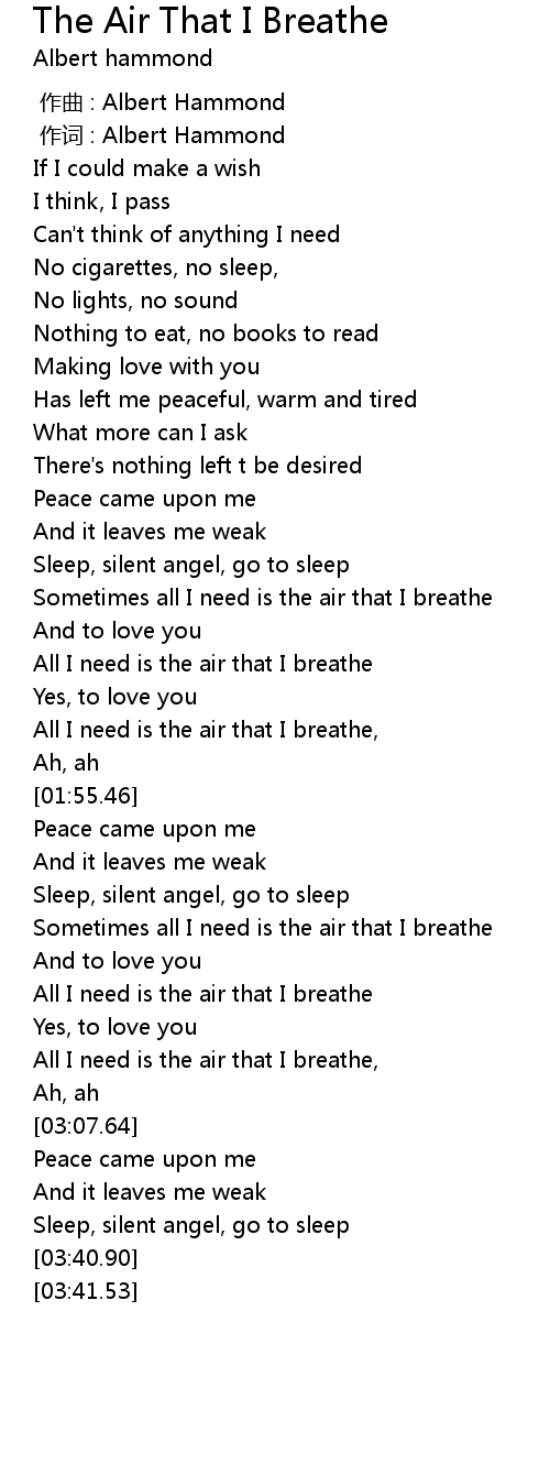| [02:30.77] | Sometimes all I need is the air that I breathe |