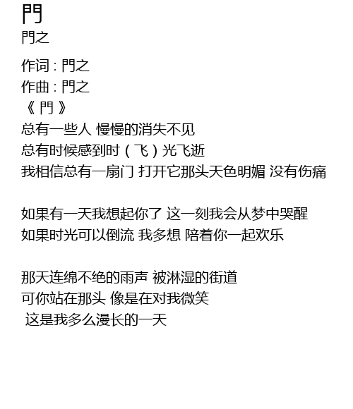 | wǒ xiāng xìn zǒng yǒu yī shàn mén dǎ kāi tā nà tóu tiān sè míng mèi méi yǒu shāng tòng | |
