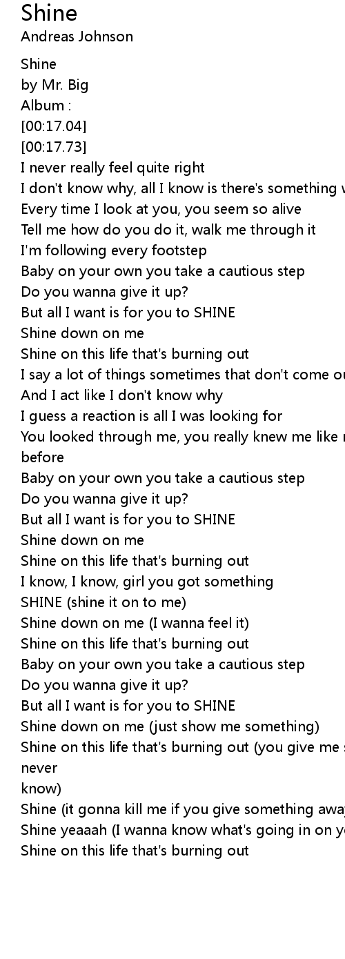 Shine yeaaah (I wanna know what's going in on your mind) |