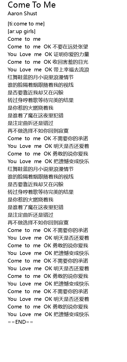 | [02:51.101] | Come to me OK bu xu yao ni de cheng nuo |