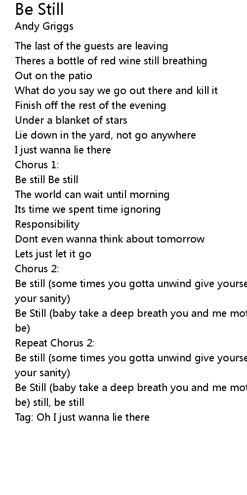 Be Still (baby take a deep breath you and me motionless no where else id rather be) still, be still |