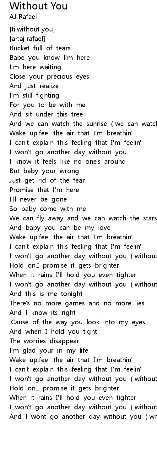 | [02:39.97] | And I wont go another day without you (without you) |