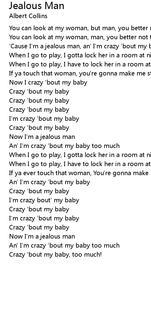 'Cause I'm a jealous man, an' I'm crazy 'bout my baby, too much |