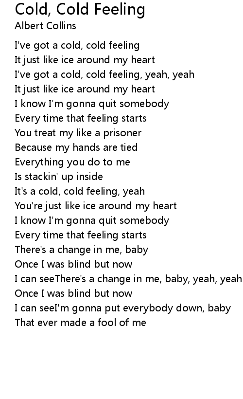 I've got a cold, cold feeling, yeah, yeah |