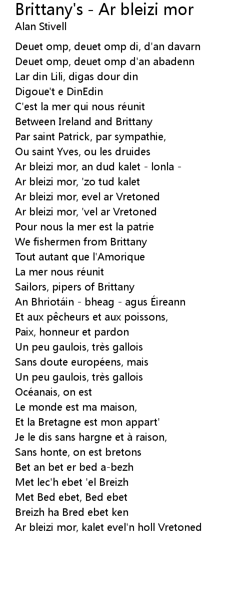 | Ar bleizi mor, kalet evel'n holl Vretoned |