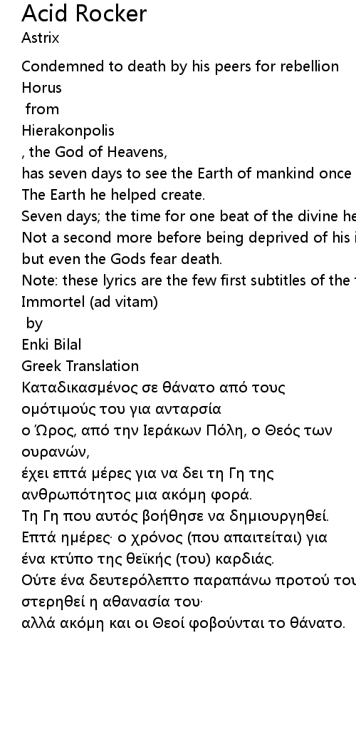 | Νote: these lyrics are the few first subtitles of the film: | |