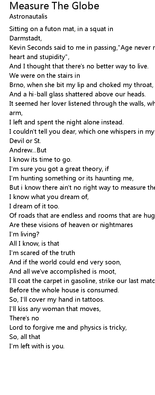 But i know there ain't no right way to measure the globe...oh no. |