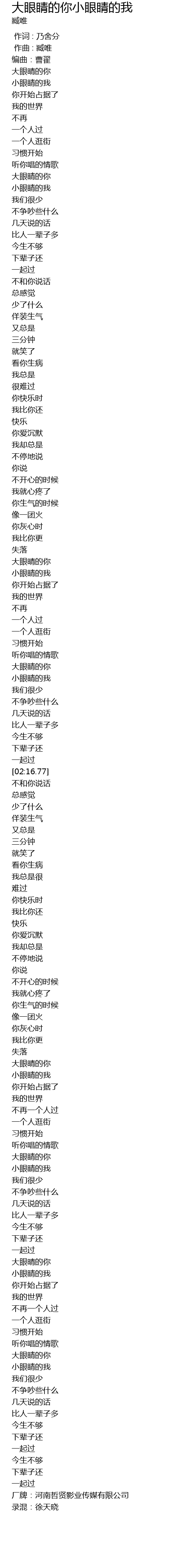 | [01:49.58] | 大眼睛的你 |