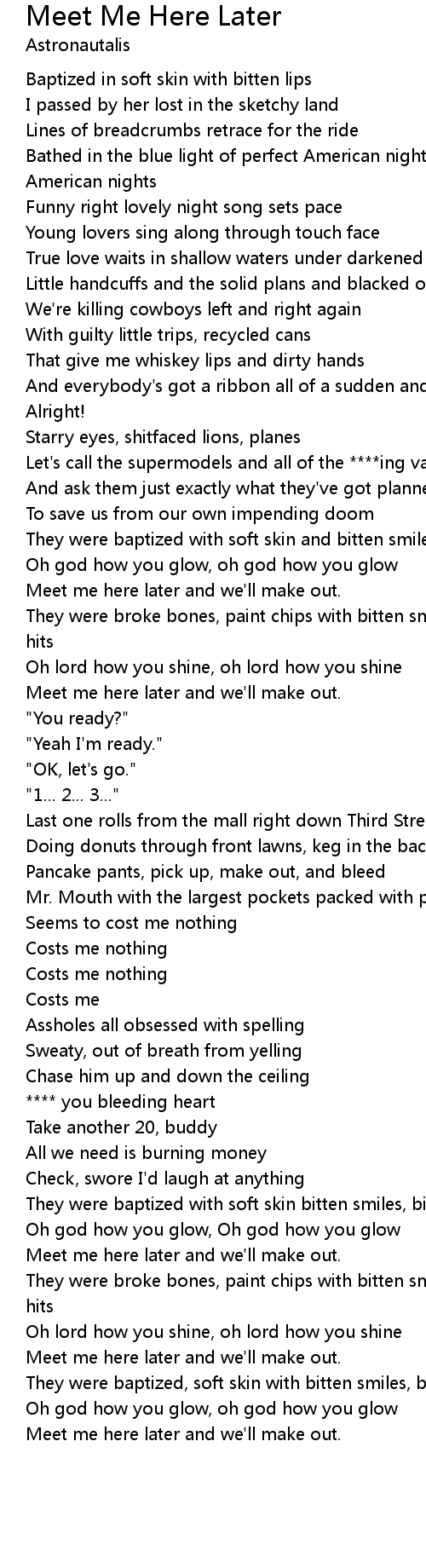 Meet me here later and we'll make out. |