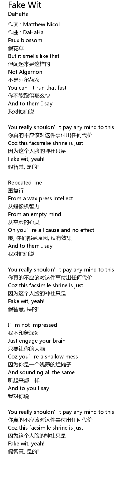 | Song | Fake Wit |