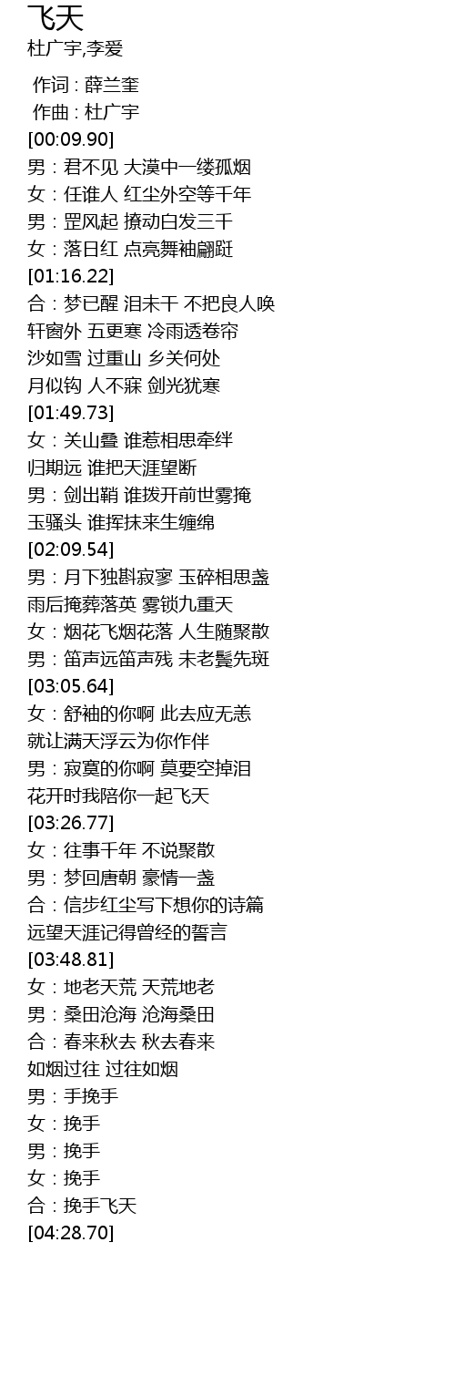| [04:21.87] | hé: wǎn shǒu fēi tiān |
