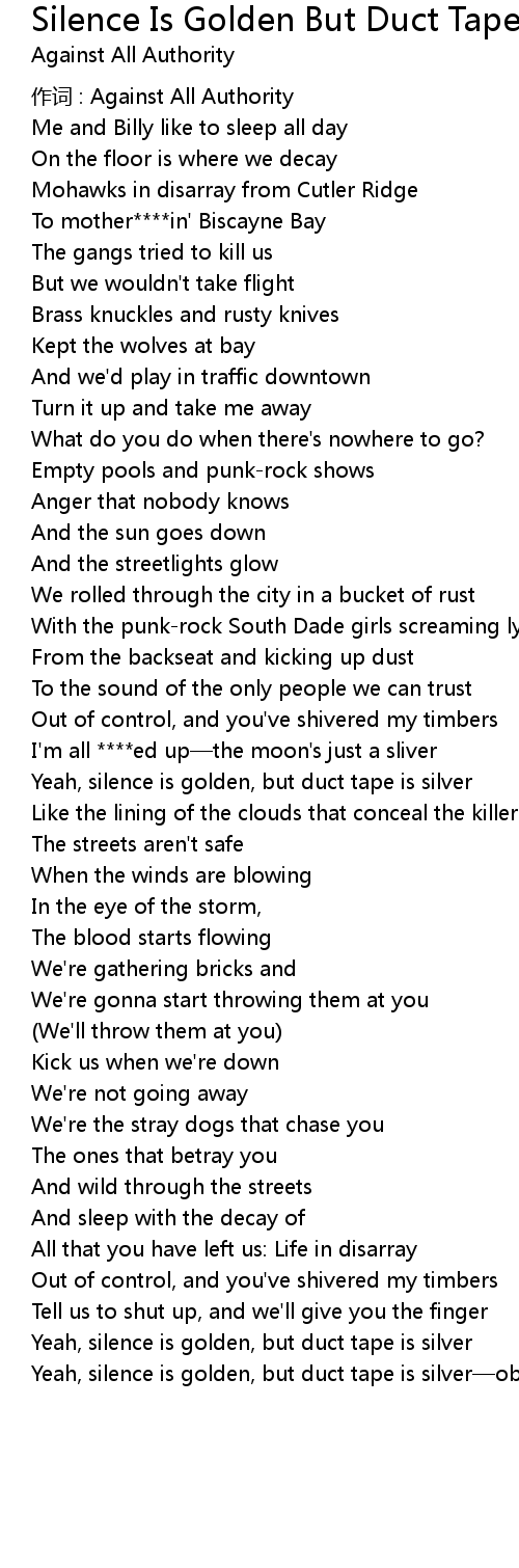 | Song | Silence Is Golden But Duct Tape Is Silver |