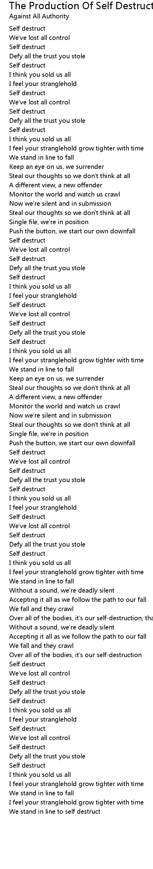The Production Of Self Destruction Lyrics
