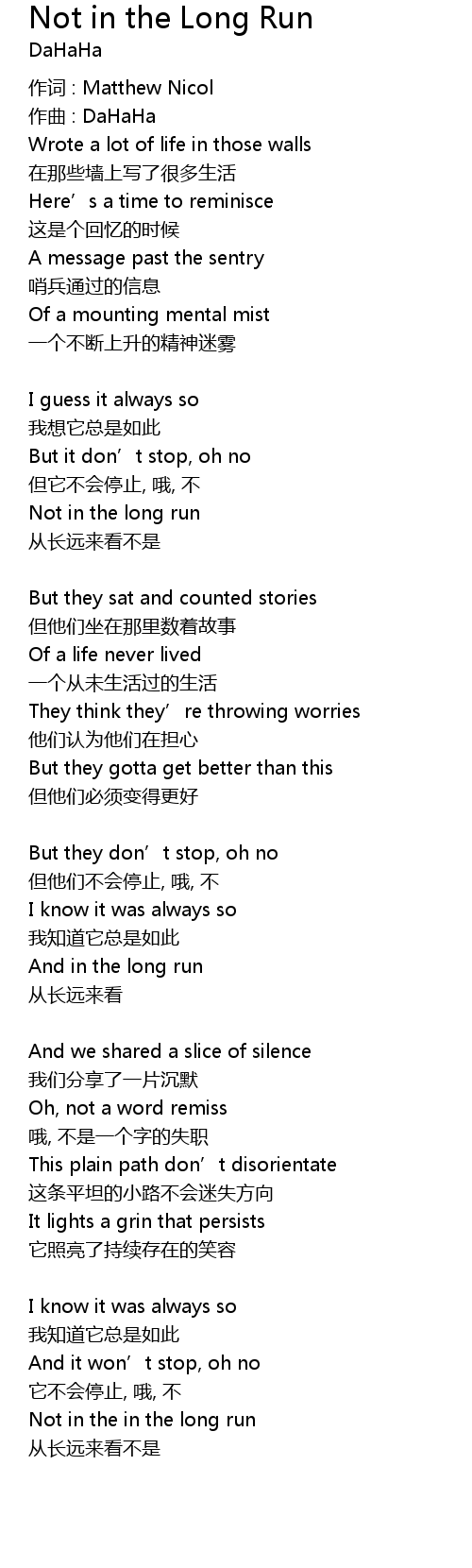 | Song | Not in the Long Run |