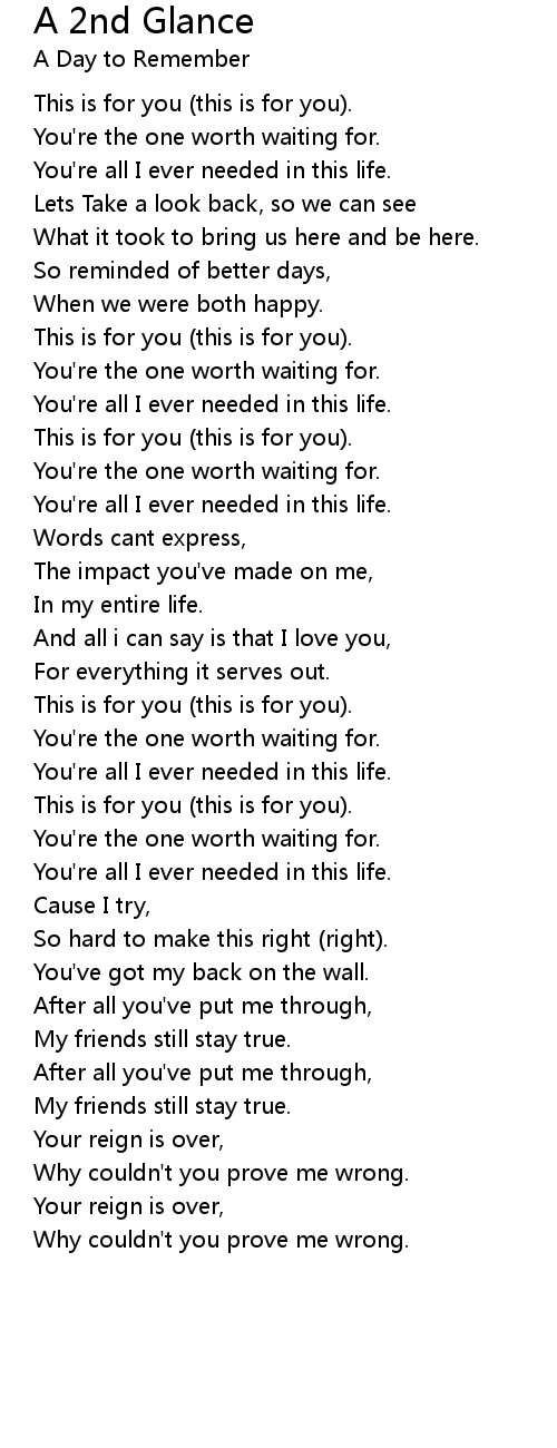 A 2nd Glance Lyrics