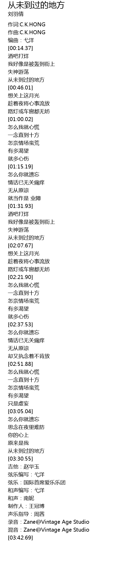 | [00:41.98] | cóng wèi dào guò de dì fāng |