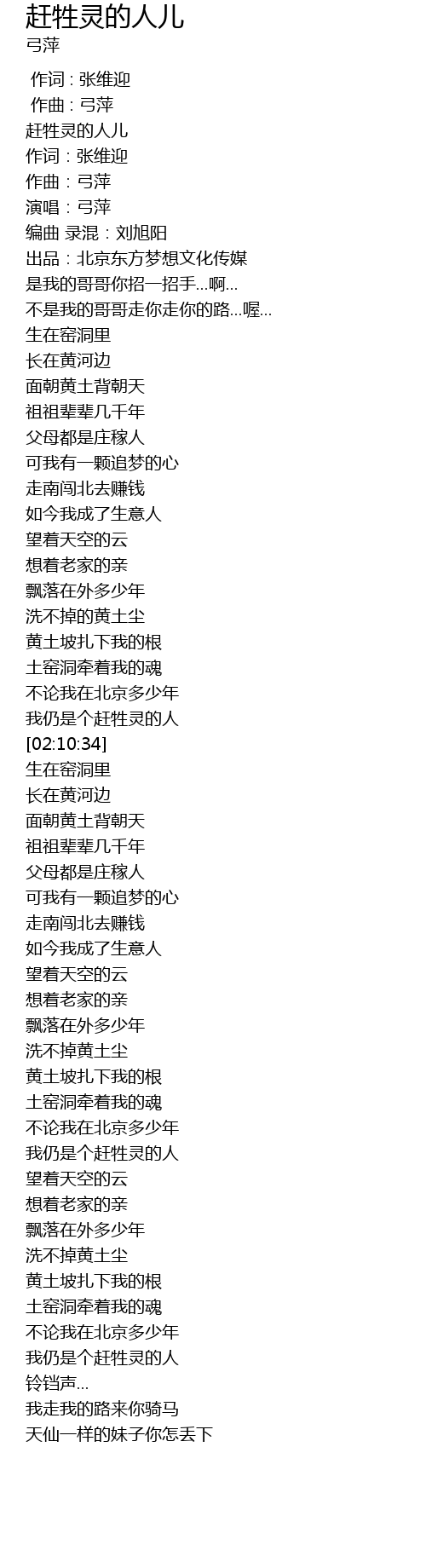 | [01:44:67] | 土窑洞牵着我的魂 |
