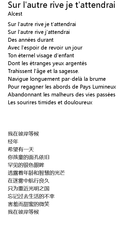 | [01:51] | Sur l' autre rive je t' attendrai |