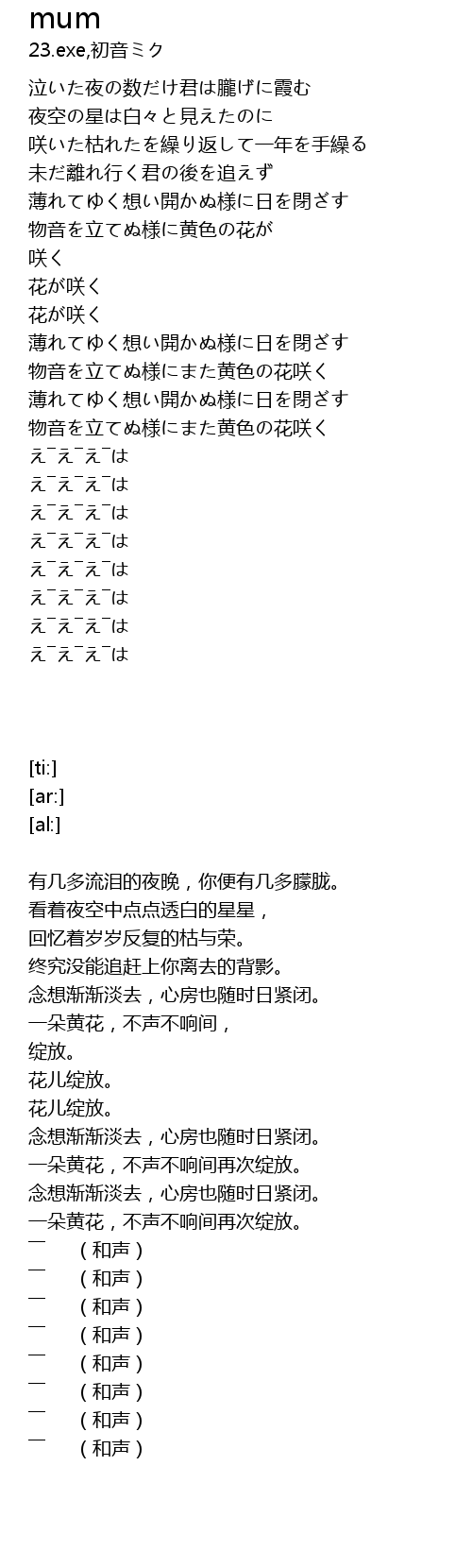 | [02:45.28] | 物音を立てぬ様にまた黄色の花咲く |